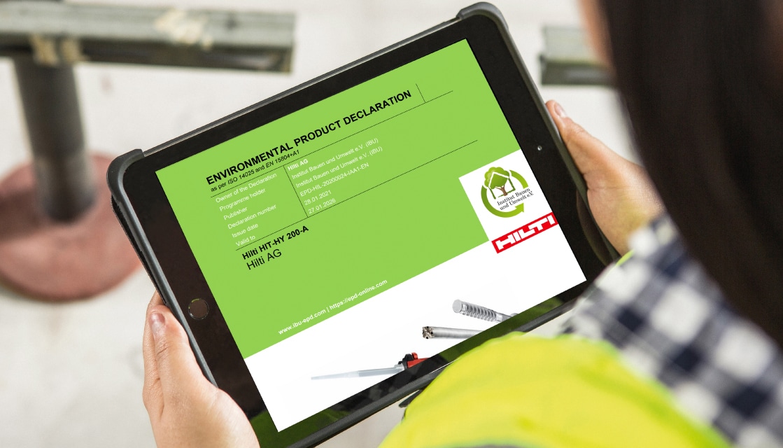 Con documentación de terceros disponible para más de 1.500 productos, Hilti ofrece datos diseñados para apoyar los esfuerzos de certificación y ayudar a los proyectos a demostrar su impacto en sostenibilidad.